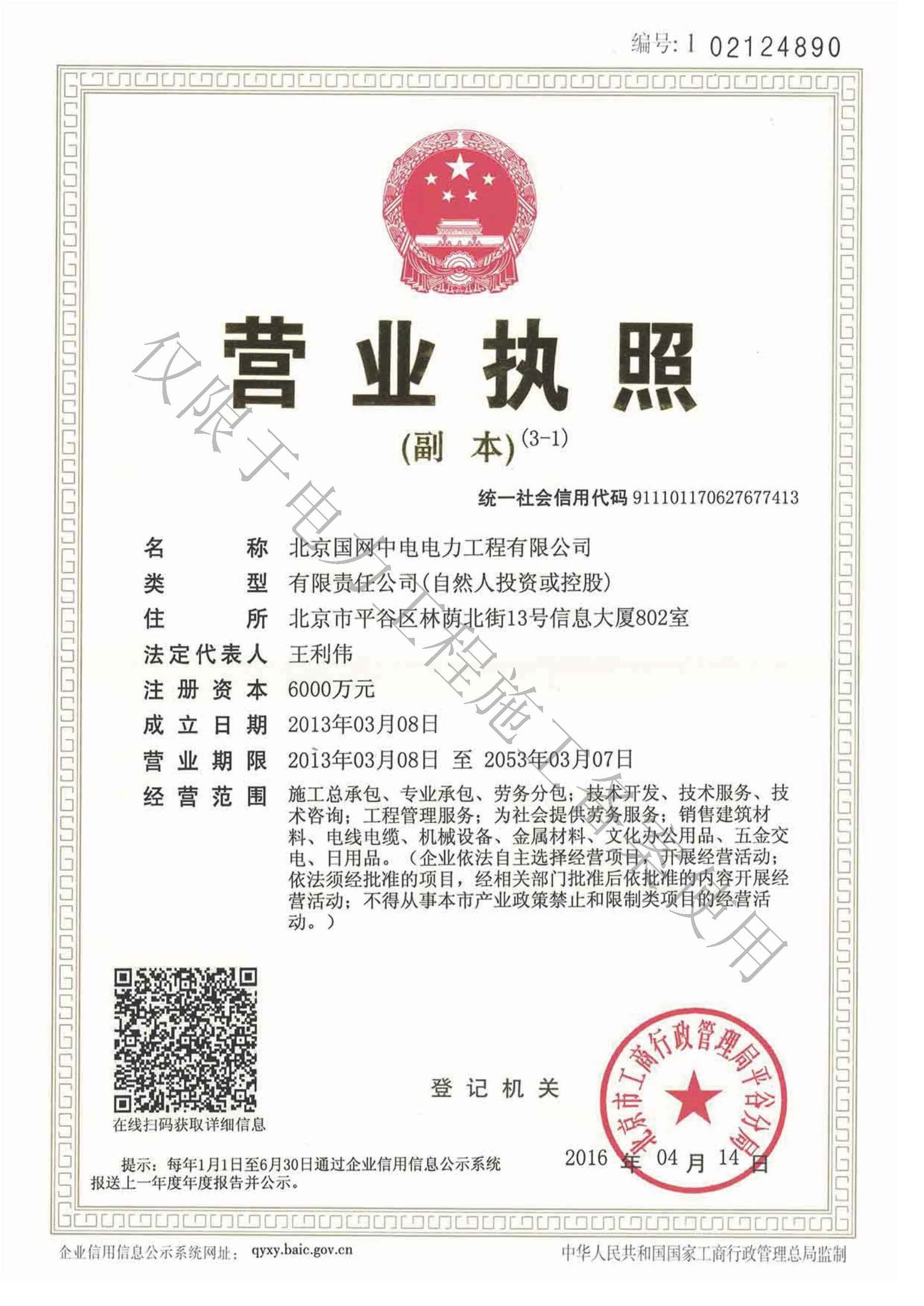 北京國網中電電力工程有限公司 地址:北京市朝陽區常營北路萬象新天開閉站